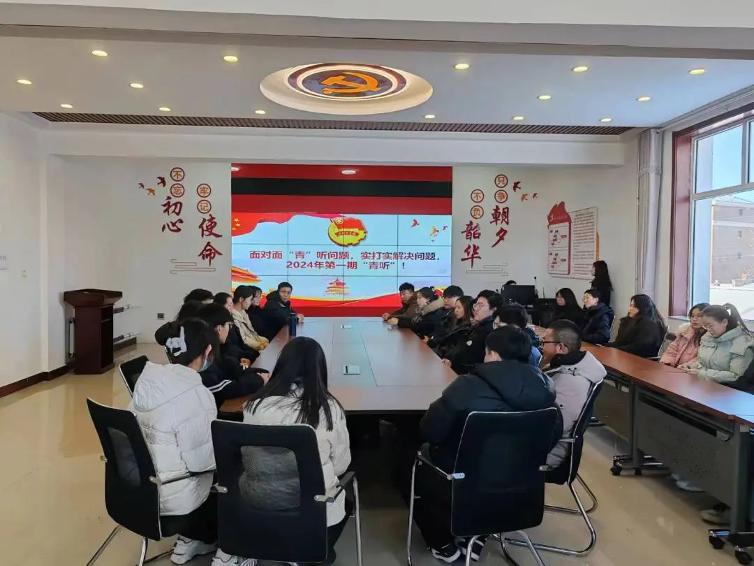 为深入贯彻落实习近平总书记关于青年工作的重要思想,充分发挥共青团联系青年的桥梁纽带作用,不断提升共青团的组织力、引领力、服务力和大局贡献度,积极引导广大青年员工投身家乡的沃土,为更好的了解实习老员工目前存在的问题与需求,倾听老员工内心真实的声音,2024年1月25日,团委开展面对面“青”听问题,实打实解决问题2024年第一期"青听”活动。