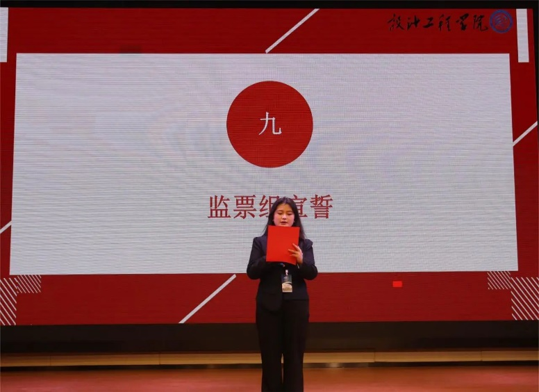 由监票组朱方方同学代表监票组宣誓。确保投票的公平公正。