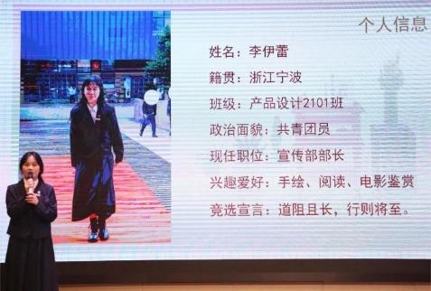 本次选举共有5位候选人,分别是1号李伊蕾、2号赵应顺、3号杨文瑞、4号钟文茜、5号陈洁茹。各候选人按照顺序依次进行演讲及现场答辩。