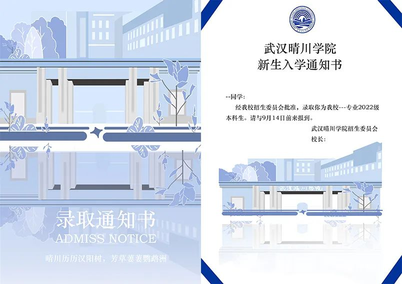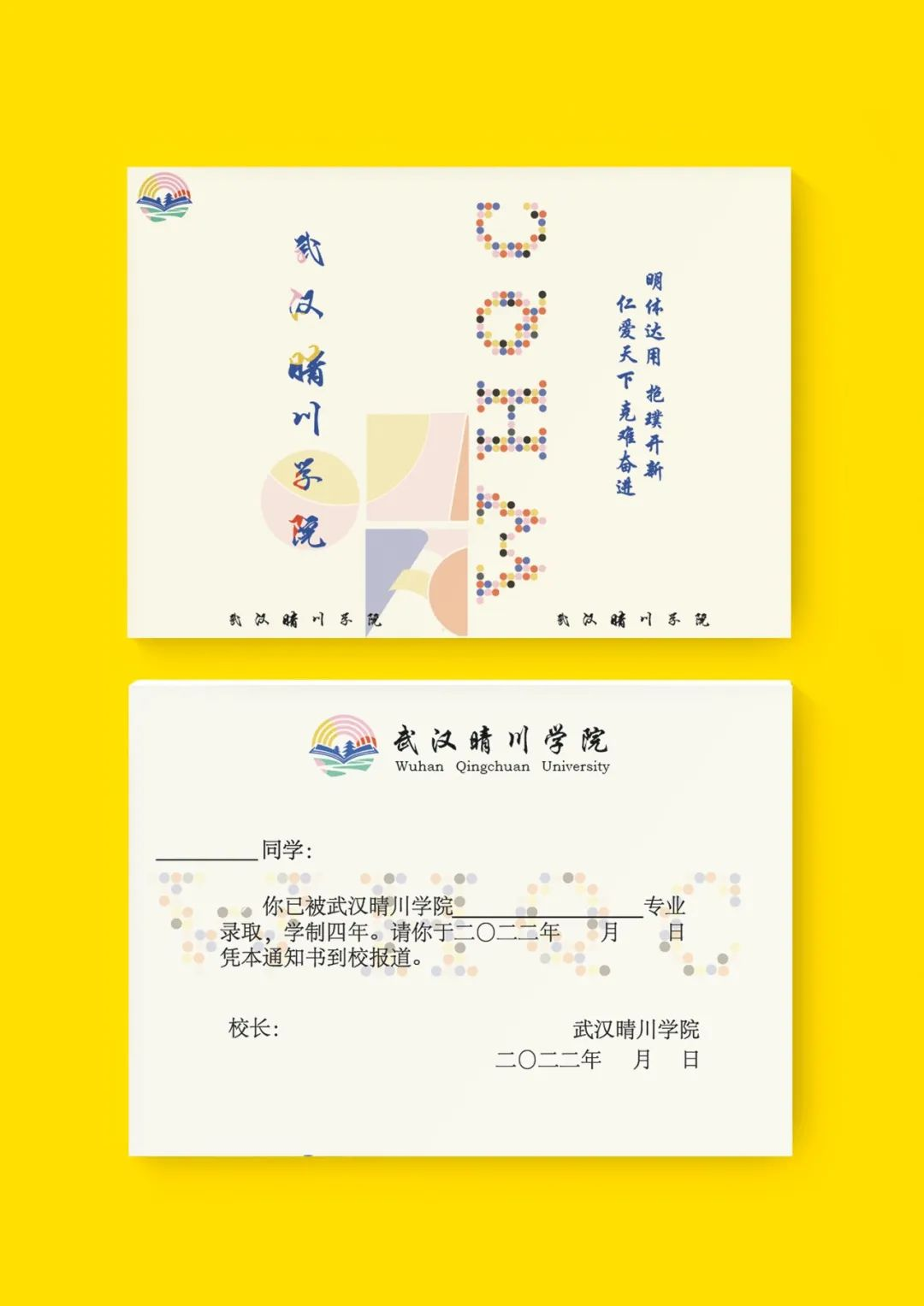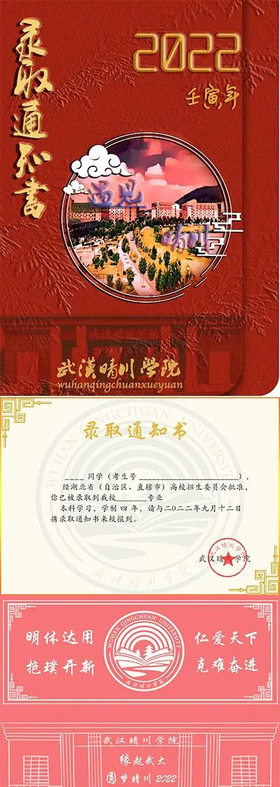 1、录取通知书的正反面内容(包含校徽、校训、图案 )