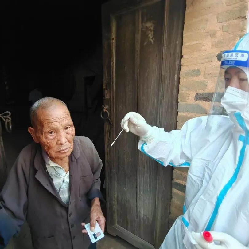 图四:志愿者为老人做核酸