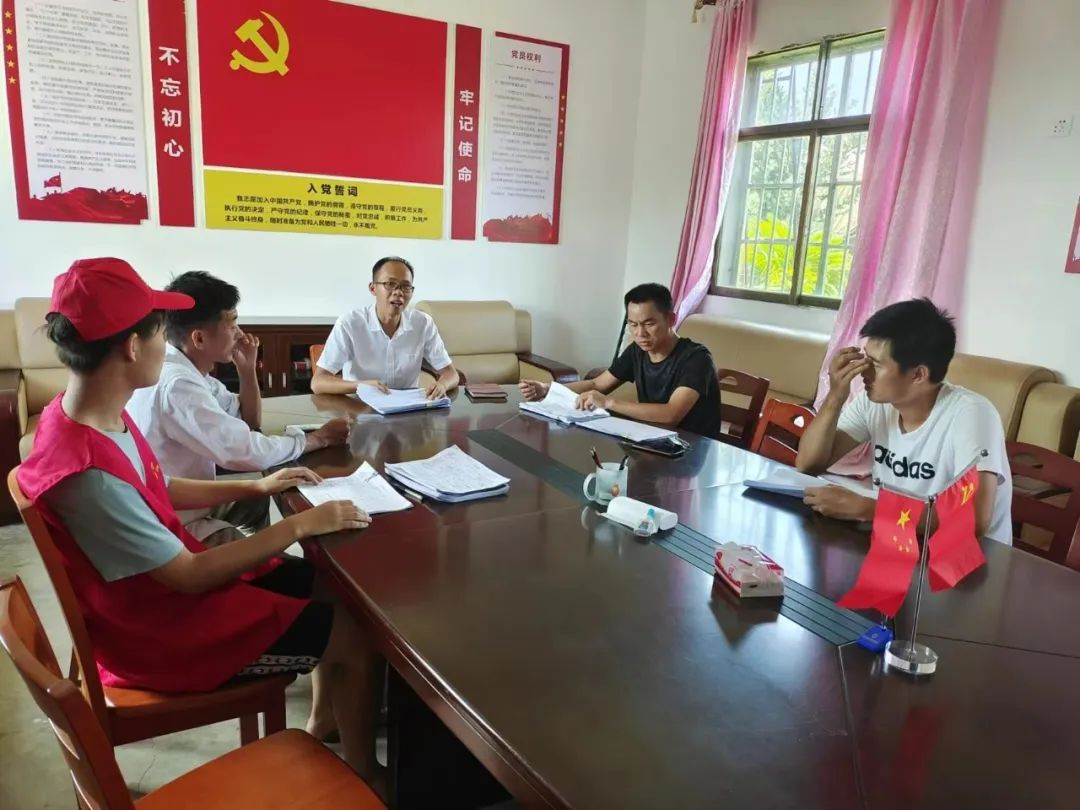 图一:志愿者与村委交流