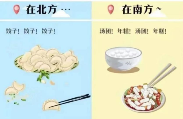 北方:没有饺子不叫年,饺子馅里要包钱。北方有着“过年不端饺子碗,冻掉耳朵没人管”的民谣,坐在餐桌前包饺子,浓浓香味,满满家味,暖暖爱意。