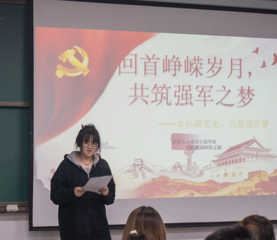 三号选手数媒2204王正东带来的《永远跟党走 共筑强军梦》中国奋斗时期军事的重要性 新中国成立以来我国国防事业飞速发展,彰显传承红色血脉,不负韶华的青春力量。