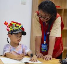 图3:老师教孩子簪花
