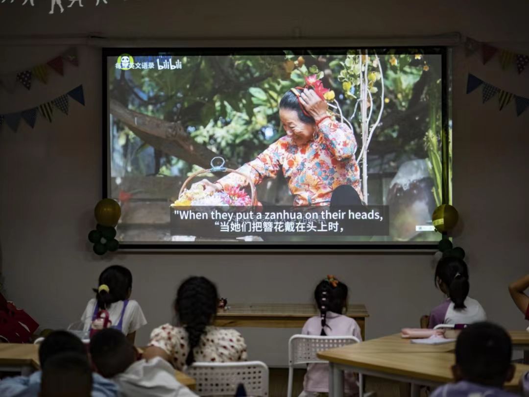 图1:孩子们观看簪花视频